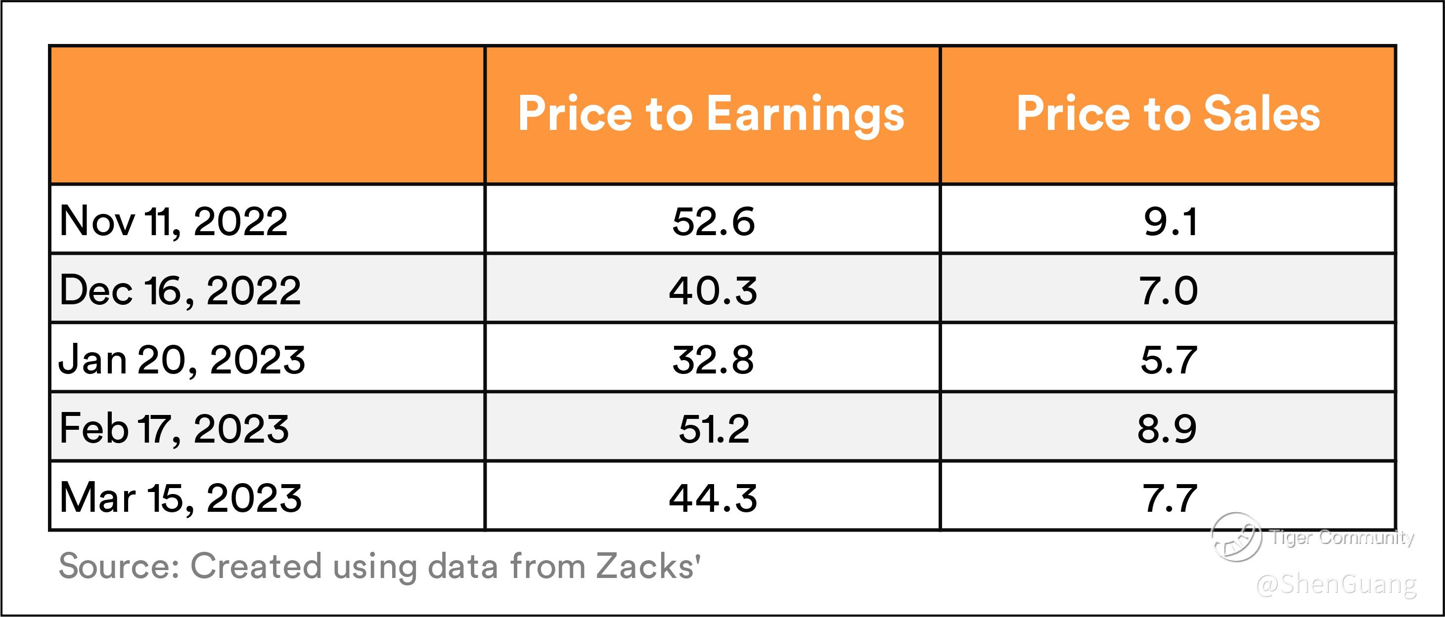 For a sense of how Tesla’s stock is perceived, let’s now consider the evolution of two price ratios: the Price to Earnings (PE) and Price to Sales (PS) since Q4 of last year till the present.