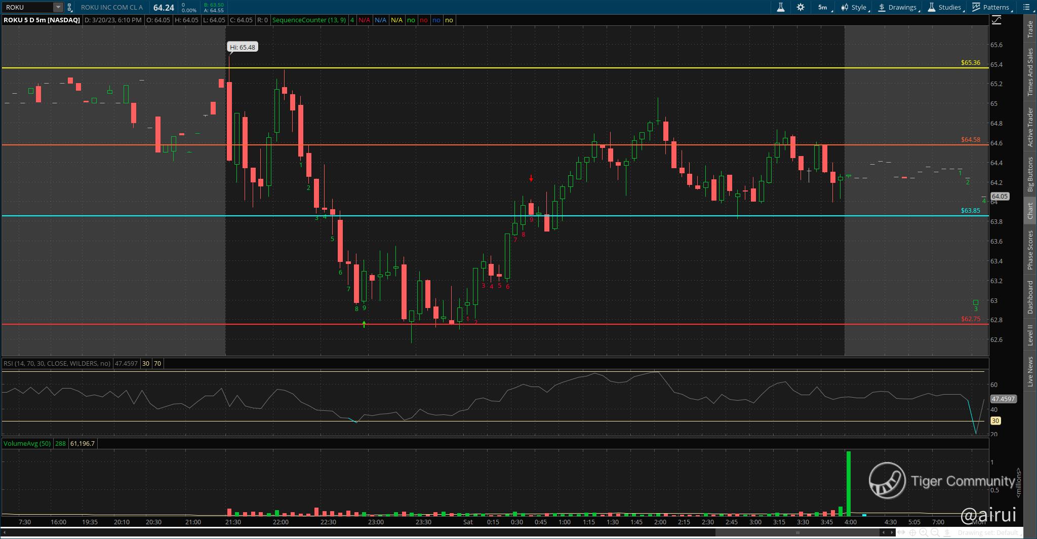 ROKU closed last Friday, March 17, 2023, at $64.24. It's important to keep an eye on the key levels and wait for a confirmation of the stock's direction before entering a position