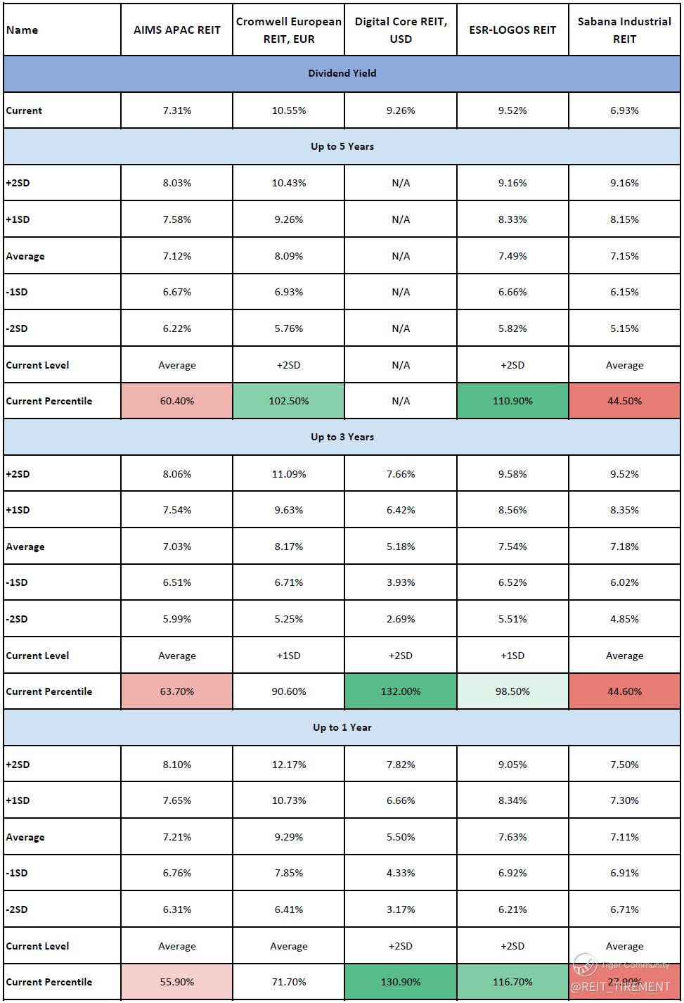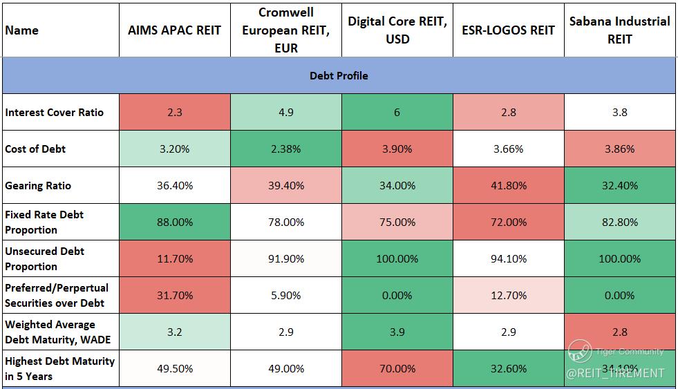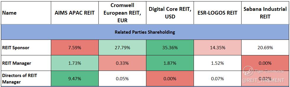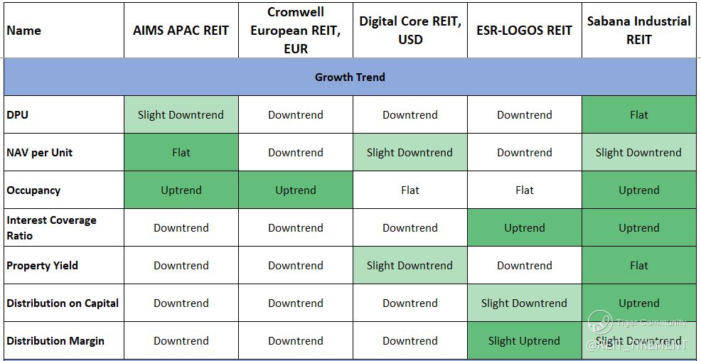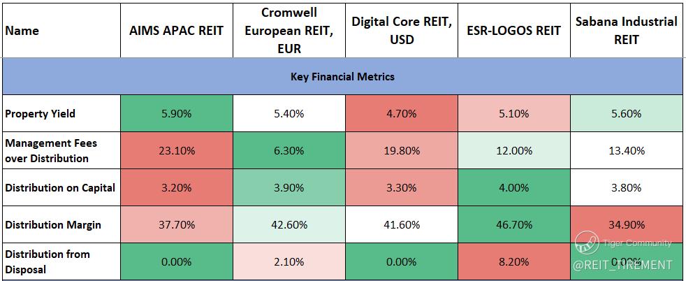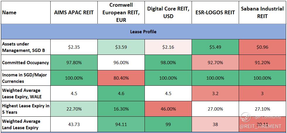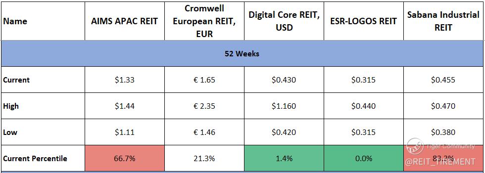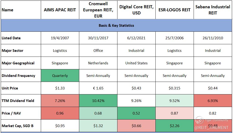 $AIMS APAC REIT(O5RU.SI)$ $DigiCore Reit USD(DCRU.SI)$ $Cromwell Reit EUR(CWBU.SI)$ $Cromwell Reit SGD(CWCU.SI)$ $SABANA SHARI'AH COMPLIANT REIT(M1GU.SI)$ $ESR-REIT(J91U.SI)$