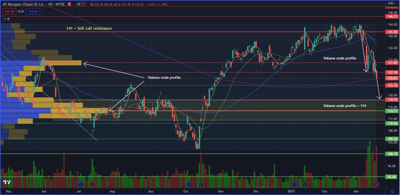 - One of the best big banks have broken a key support level past week (high volume node level = 131)