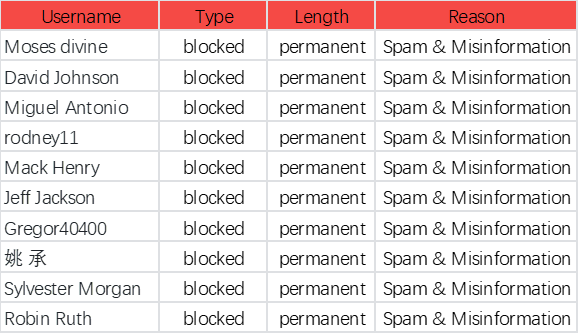 Here is the List of Banned Users for this week: