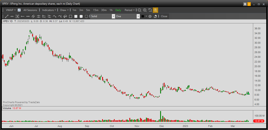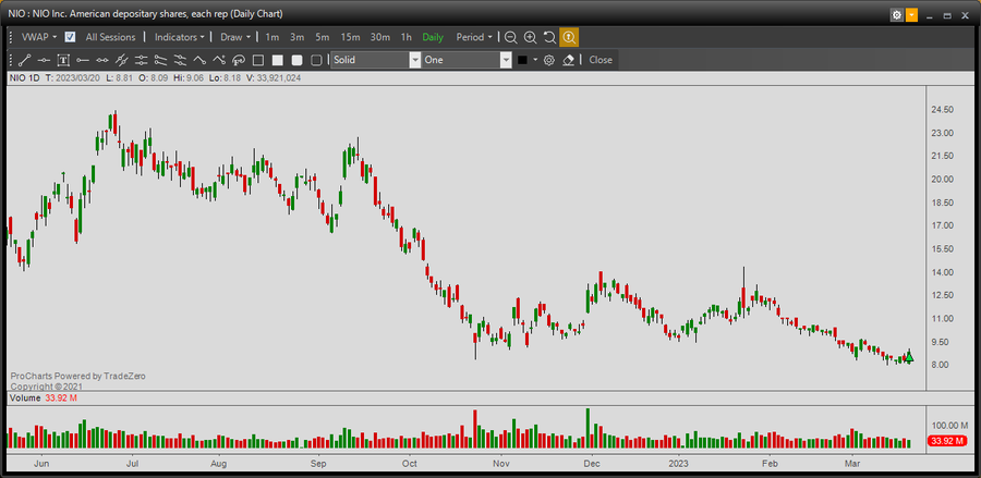 Major downtrend + increasing competition w/ Tesla price cuts = lack of bullish positioning in group