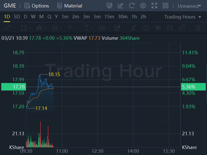 $(GME)$Disclaimer: Investing carries risk. This is not financial advice. The above content should not be regarded as an offer, recommendation, or solicitation on acquiring or disposing of any financial products, any associated discussions, comments, or posts by author or other users should not be considered as such either. It is solely for general information purpose only, which does not consider your own investment objectives, financial situations or needs. TTM assumes no responsibility or warranty for the accuracy and completeness of the information, investors should do their own research and may seek professional advice before investing.