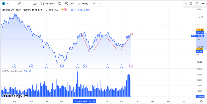 It means that after the emergence of double bottom pattern, $iShares 20+ Year Treasury Bond ETF(TLT)$ is highly likey to rise above the resistance level of $108.