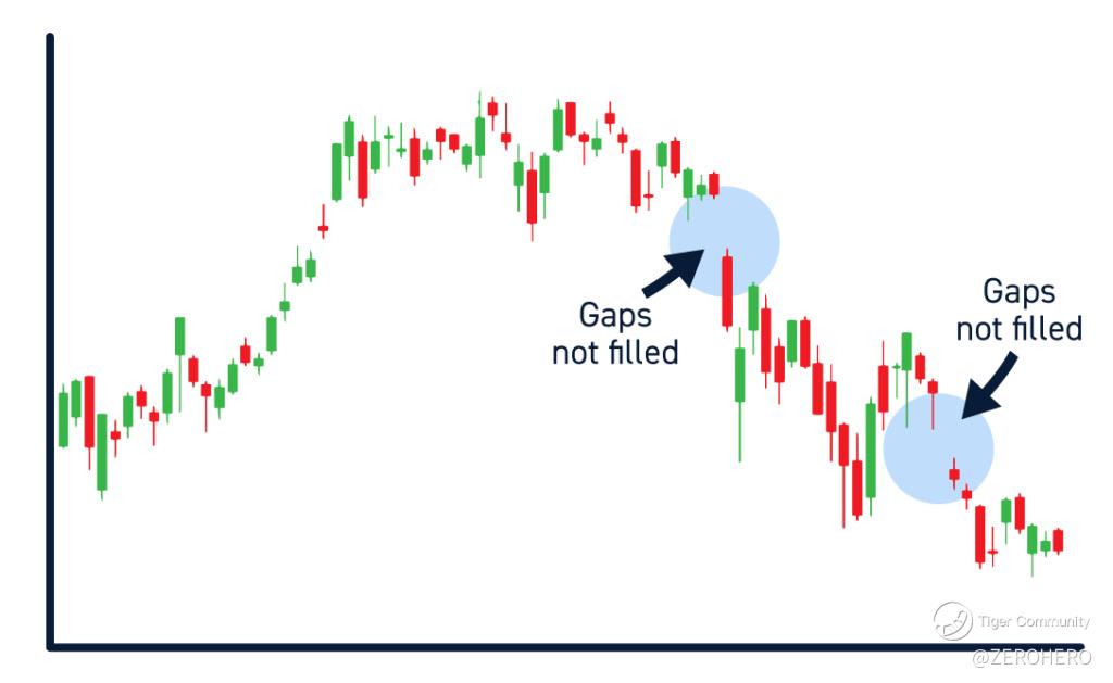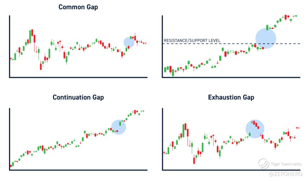 Continuation gaps occur in the middle of a strong trend, in the direction of the trend. They are usually caused by a sudden increase in buying or selling action.