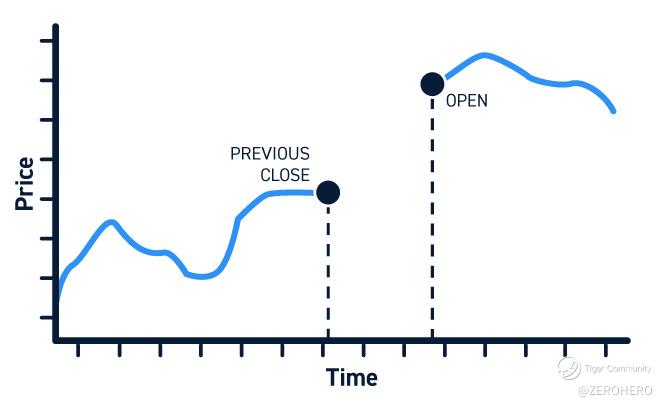Stocks can gap up or down. A gap up happens when a stock opens above the top of the previous candlestick. A gap down happens when a stock opens below the bottom of the previous candlestick.