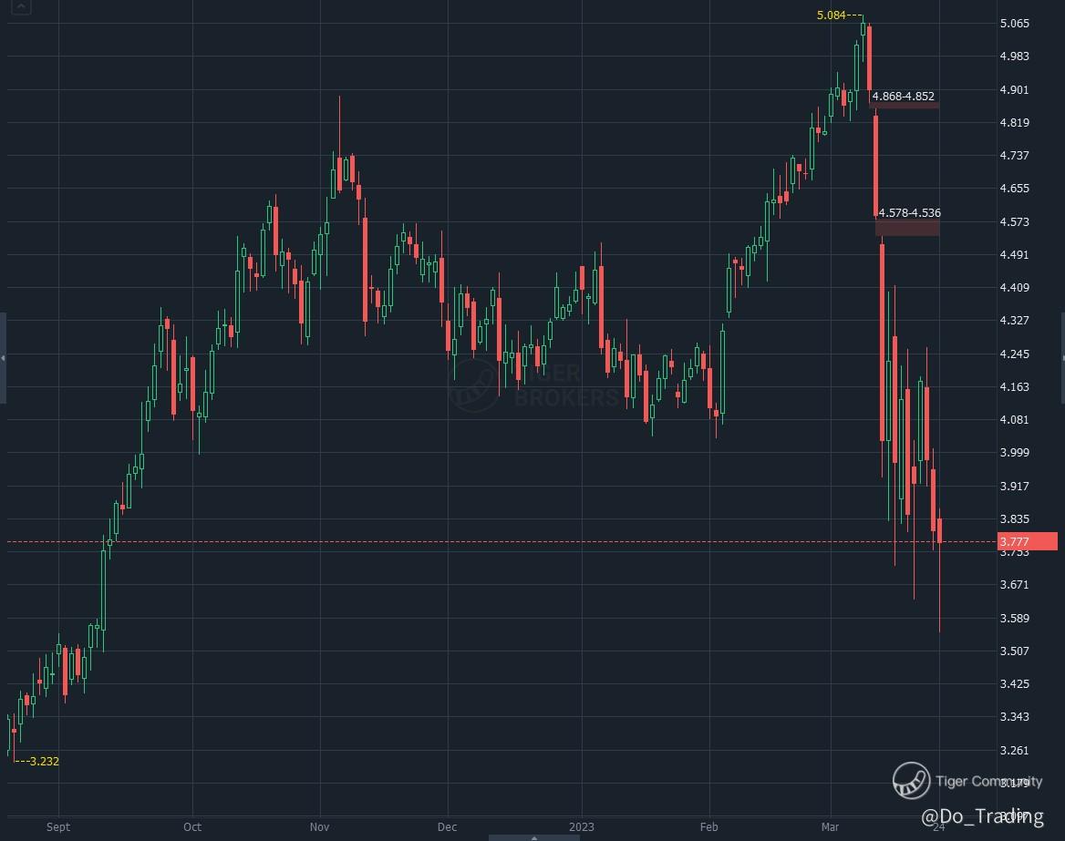 This yield rushedly dropped by around 125 bases since it reached its top of 5.064 % over 52 weeks on March 8, when the concerns about $SVB Financial Group(SIVB)$ surfaced for the first time ...