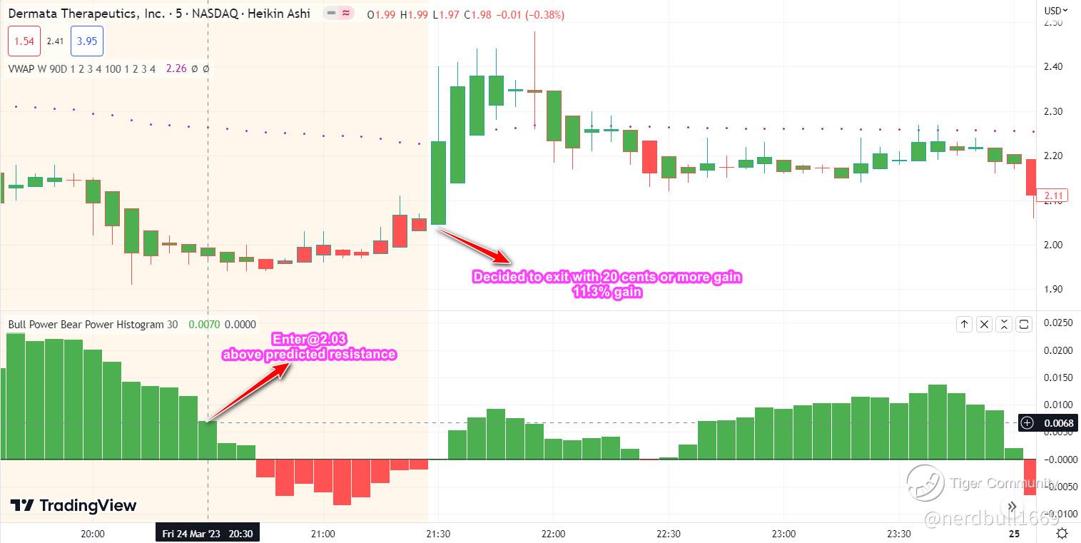 We have a good 71% gain swing trade on ZYVERSA THERAPEUTICS (ZVSA) Best 71% Gain! Swing Trade - ZYVERSA THERAPEUTICS (ZVSA) - on 23 Mar 2023, and we have another 11.3% gain on $Dermata Therapeutics Inc(DRMA)$ before it turns South.
