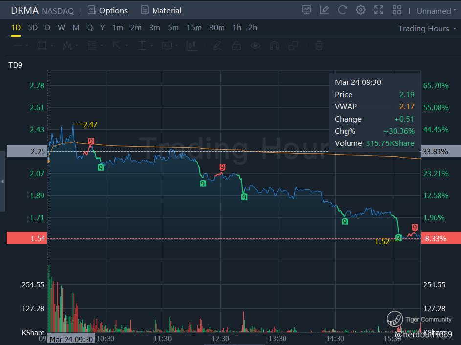 [Therapeutics] Good 11.3% Gain on DRMA before it goes South!