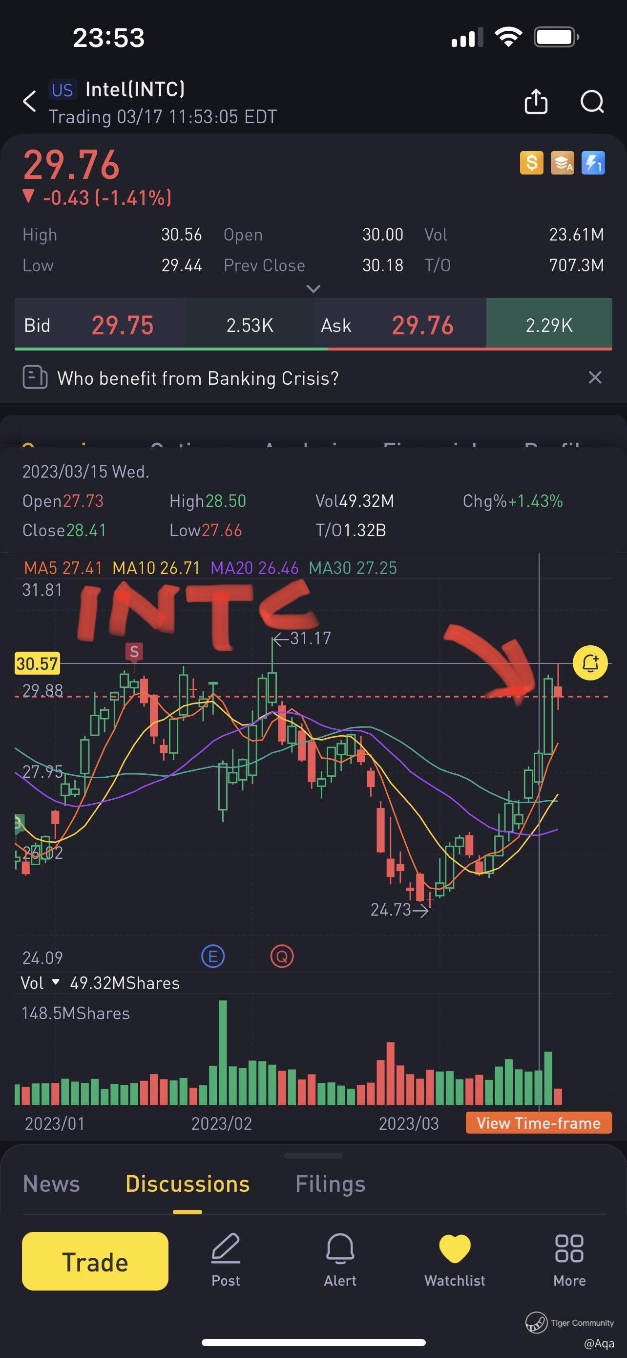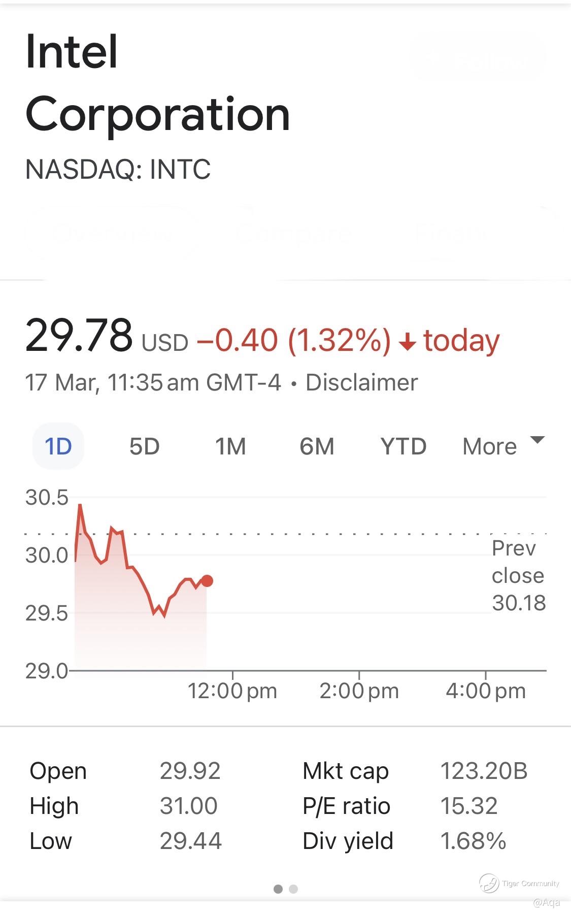 - bubblyxยท2023-03-20INTC, will be incapable of stabilizing a $31 price per share for more, than three days for the entire 2023 !LikeReport
