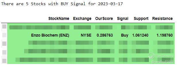 My A.I. model has predicted BUY signal for Enzo Biochem (ENZ). For rest of the stock, you may find my channel.