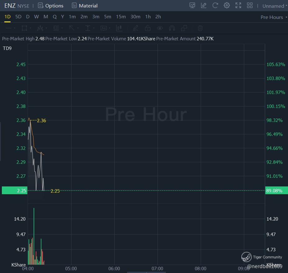 I believe the sell volume will build up soon, would further bring down the price of Enzo Biochem (ENZ) . Would you trade this stock in Pre-Market?