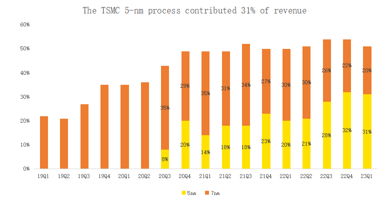 Although revenue was sluggish, the profit side slightly exceeded market expectations, mainly due to the increase in the share of 5-nanometer revenue from 20% to 31% with more advanced manufacturing process, which led to a 0.7% increase in gross margin.