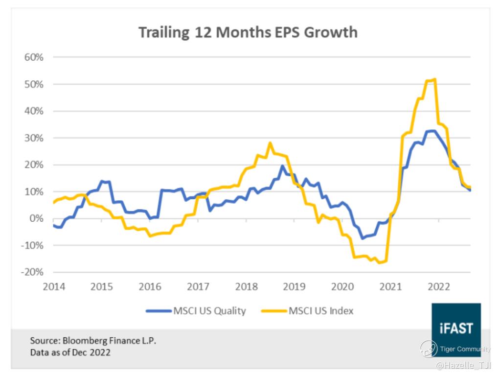 For instance, during the Covid crash in 2020 and the current inflationary period, the MSCI US Index which represents the broader market, experienced a steeper decline in EPS growth.