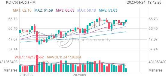 Consumer staples stock $Coca-Cola(KO)$ is the fourth-largest holding by market value in Buffett's portfolio. It's also the longest continuously held stock by Berkshire Hathaway (since 1988).