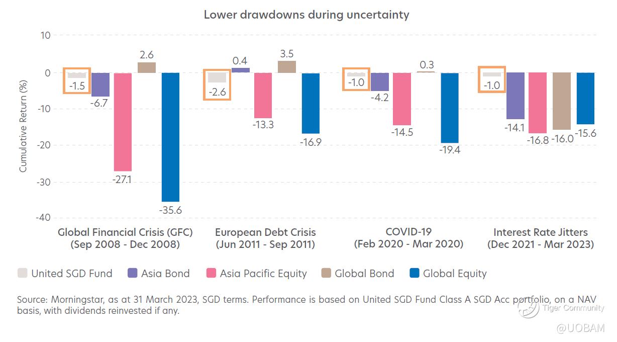Figure 5: United SGD Fund experienced lower drawdowns during periods of volatility