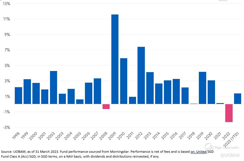 Long-term track record: The United SGD Fund has delivered positive calendar returns for 22 out of 24 years since the fund was incepted in 1998.