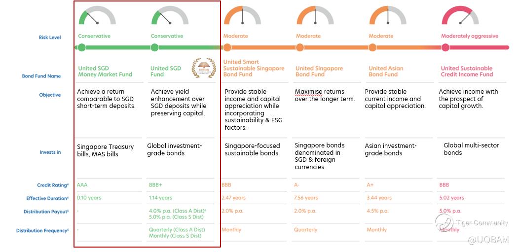 At UOBAM, we have several money market and bond fund options that range in duration and credit rating [1].
