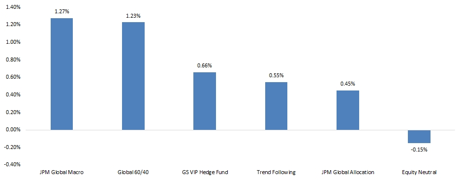 In terms of strategies, JP Morgan Global Macro strategy continued to perform solidly, while the Equity Neutral closed slightly negative.