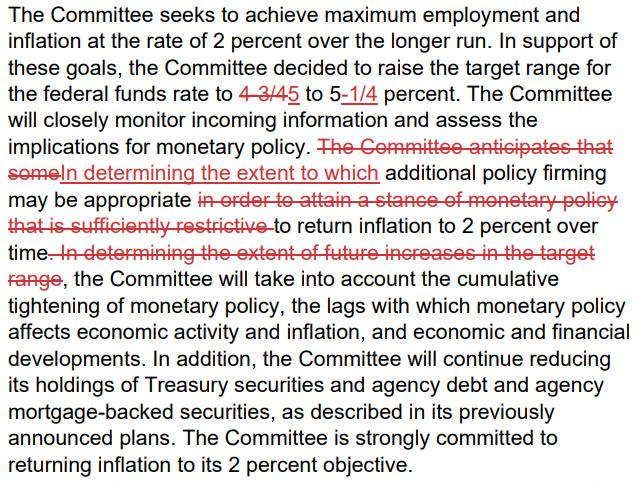 It implies that the current cycle of 500 bps rate hikes may probably hit the pause button. Market implied fed fund rate, which went down by about 20 basis points after the meeting.