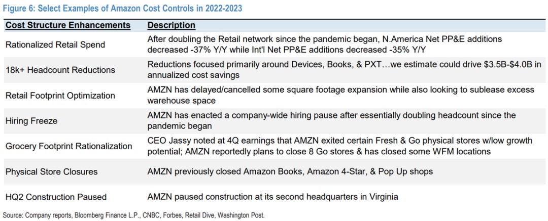有危就有機,因為之前過度擴張而出現的業績大倒退,現在則捱過了這關,反而公司的零售業務變得更強,當經濟真的向好時,零售業務的利潤上升幅度和速度都應該可以期待。我們回看2000年互聯網泡沫破裂,亞馬遜股價一度跌去90%,Jeff Bezos將中心從增長轉到盈利上。當然,除了壓縮成本,也同時擴大了電商品類、改善毛利率、優化供應鏈等措施。再回看近期Andy Jessy的動作,有沒有似曾相識的感覺?