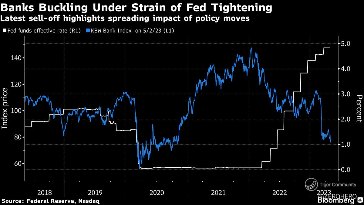 The US banking system is still struggling with the impact of the Federal Reserve’s 4.75 percentage points of interest-rate hikes, even as the central bank is set to add another quarter point on Wednesday. The resolution of First Republic Bank’s woes was supposed to relieve matters, but regional lenders promptly sank on concerns others will need rescuing.