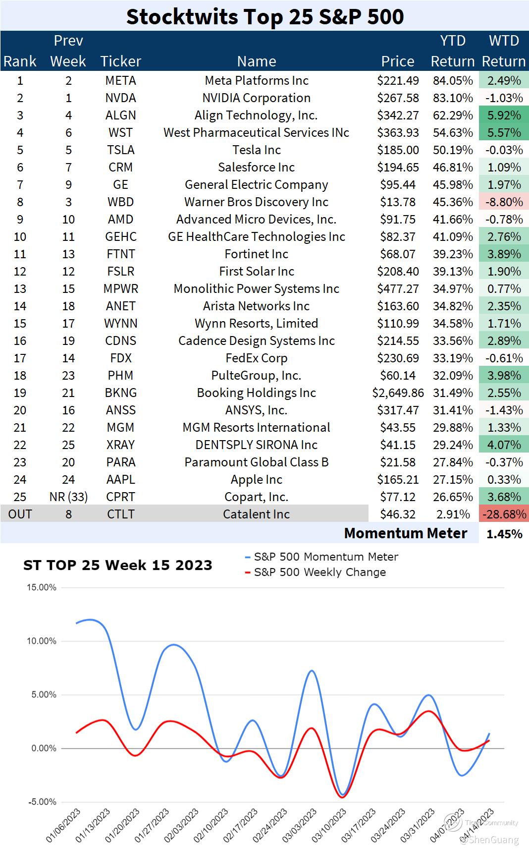 The significance of the Top 25 on the directionality of the S&P 500 can also be seen in the growing correlation between their combined momentum and the index's weekly change.