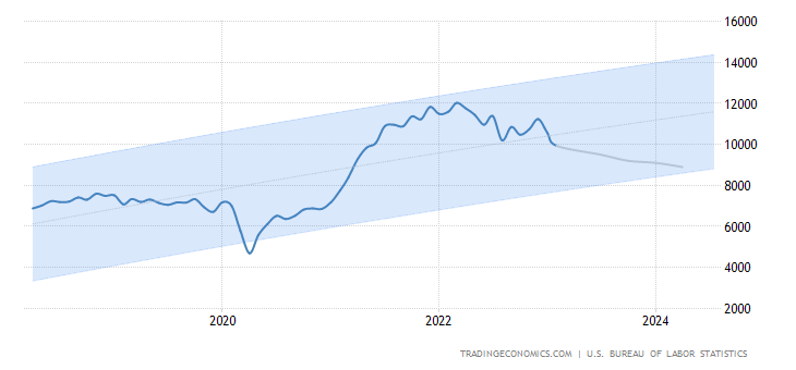 Due to the fact that JOLTS released data for February (and revised down January's data), and the unemployment rate in February exceeded expectations (actual 3.6% vs expected 3.4%), it not only indicates that the balance of employment supply and demand was achieved earlier and faster than market expectations (previously mainly due to some gaps in the service industry), but also layoffs from more industries will be closer in March, which will partially break the previous balance of employment market supply and demand.