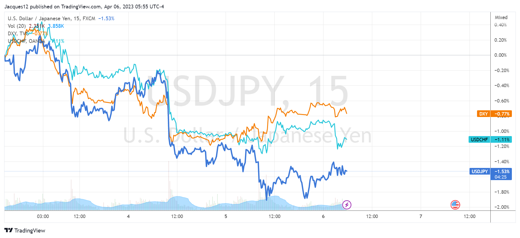The US dollar will continue to be under pressure as a result, and among safe-haven currencies, the Japanese yen $JPYmain 2306$, Swiss franc $CHFmain 2306$, and gold $GCmain 2306$ all have the opportunity to reach new highs this year.
