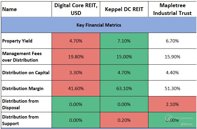 Below is the comparison for data center-focused REITs based on the latest result, extracted from SREITs Data page:
