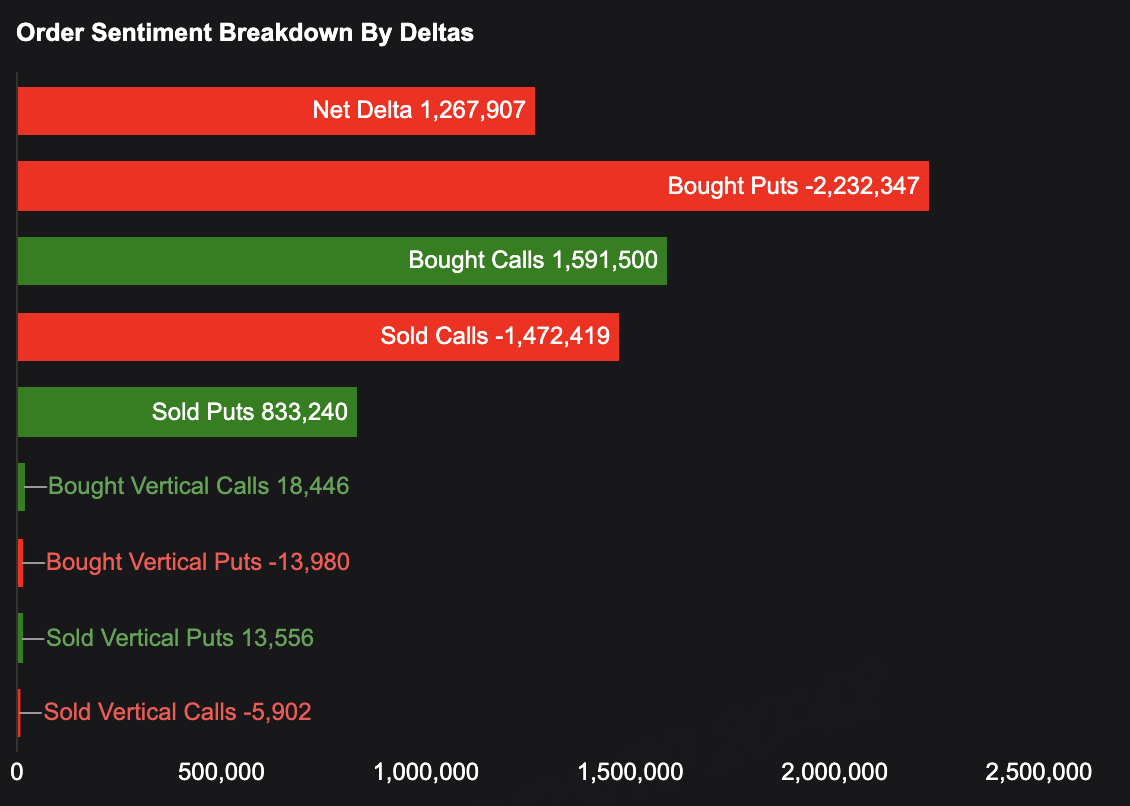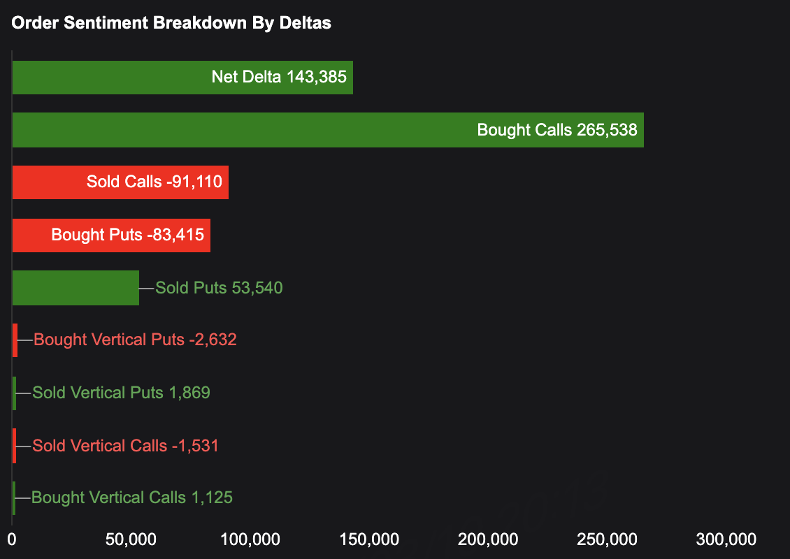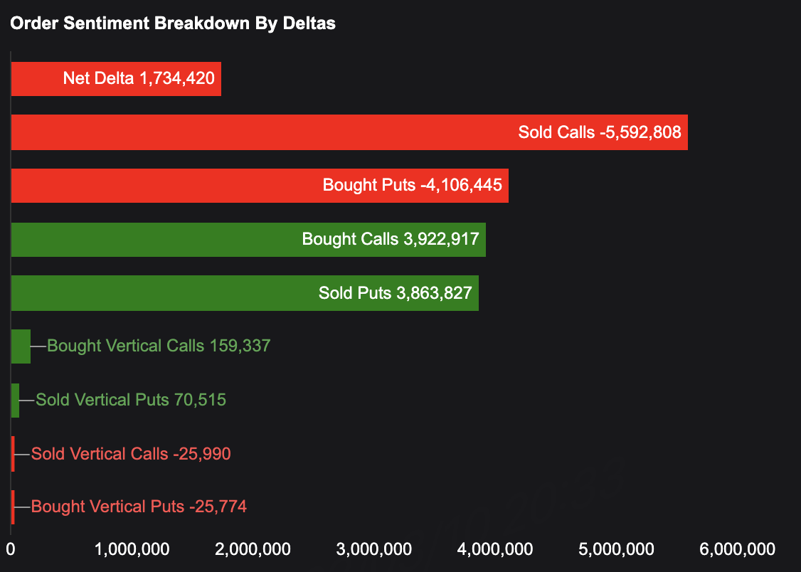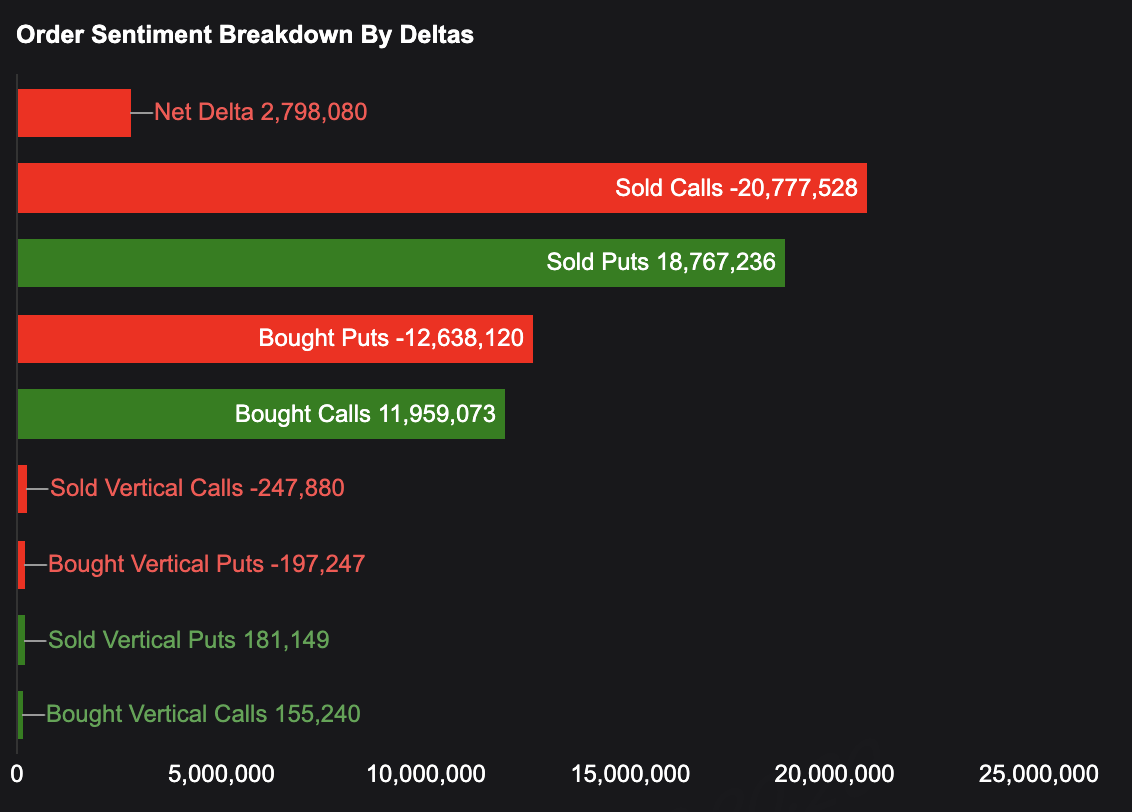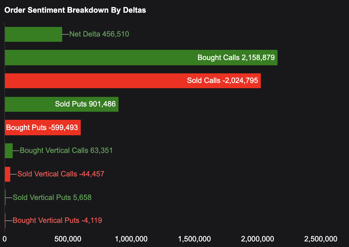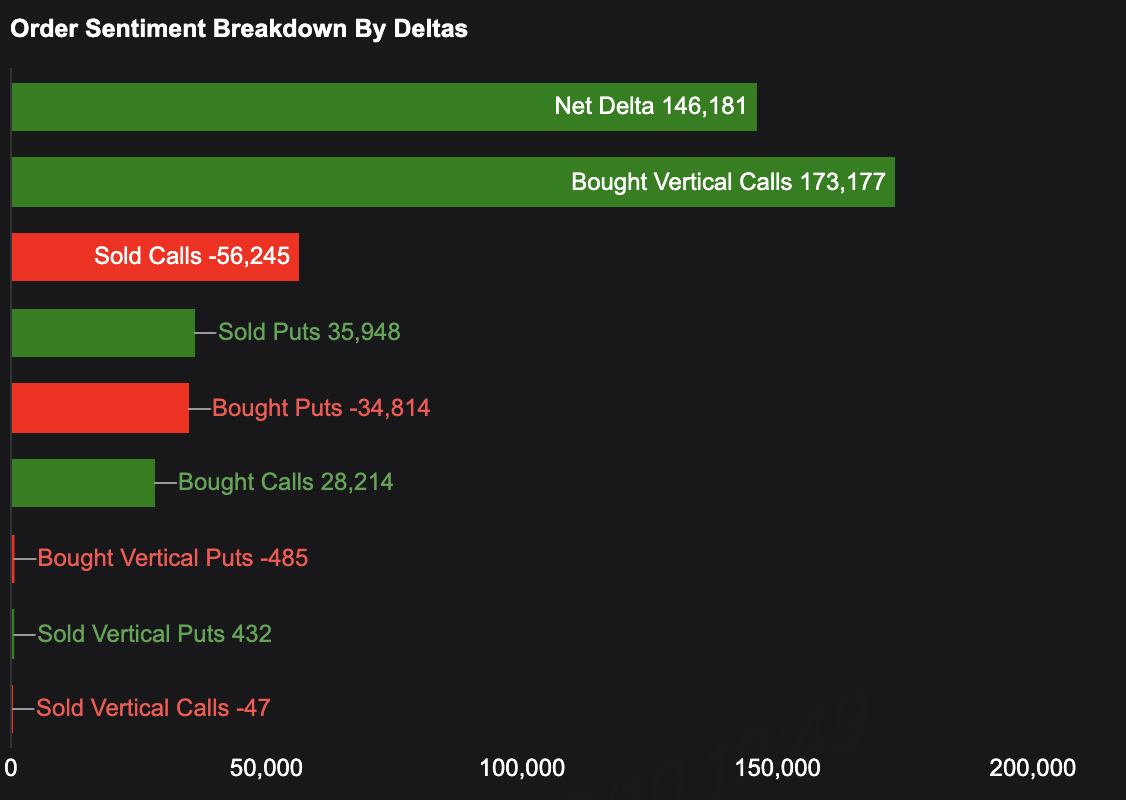 The figure below shows you a breakdown of the delta volumes based on the trade type (bought calls, sold calls, bought vertical spreads, sold vertical spreads, etc.).