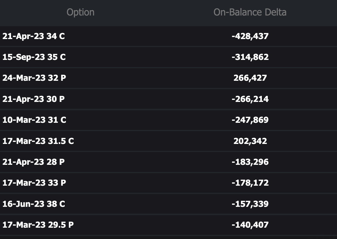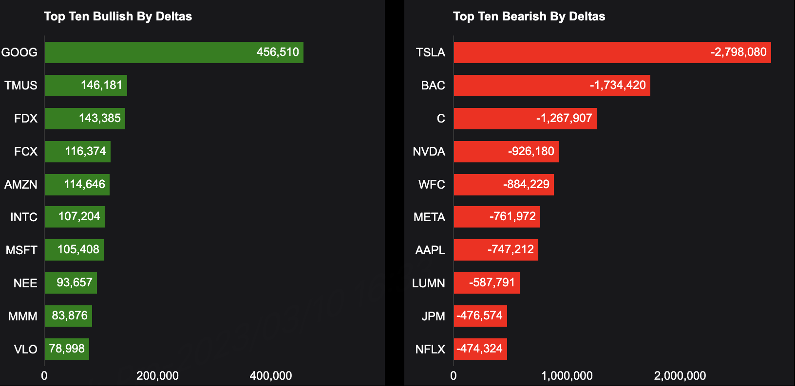 - The top 10 bearish holdings has a net option volume delta value of -11 M.