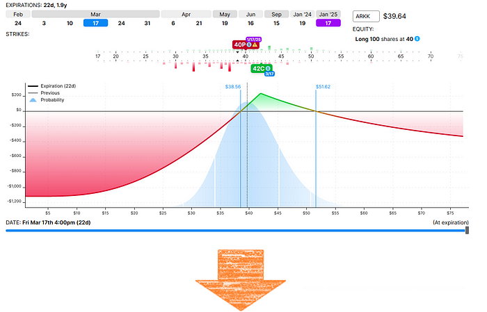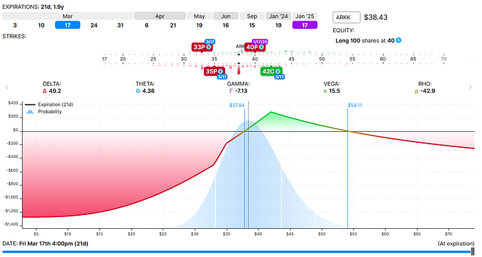 賣出 1 份 20230317 被行權價在 $42 的 Covered call @ $1.20/share