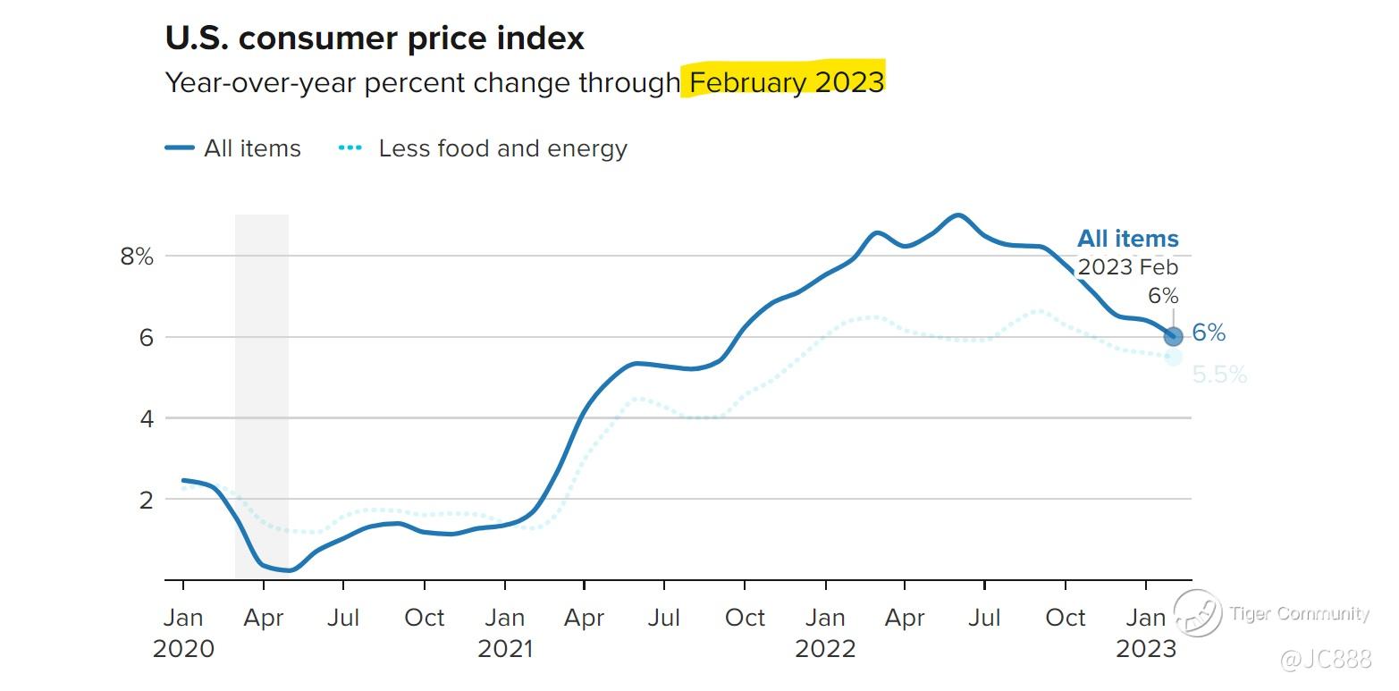 US’s Feb 2023 Consumer Price Index (CPI) data has just been announced. It was a “surprising” 6%.