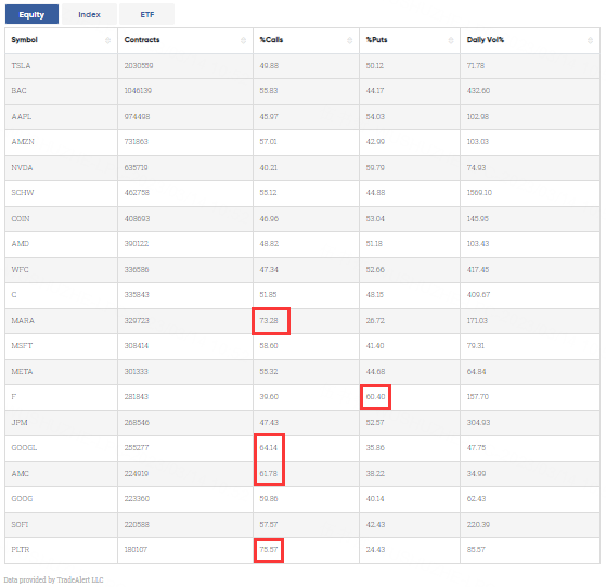 Special %Calls >60%: $Marathon Digital Holdings Inc(MARA)$; $Alphabet(GOOGL)$; $AMC Entertainment(AMC)$; $Palantir Technologies Inc.(PLTR)$