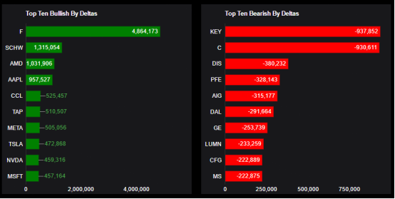 Top 10 bullish stocks: F, SCHW, AMD, AAPL, CCL, TAP, META, TSLA, NVDA, MSFT