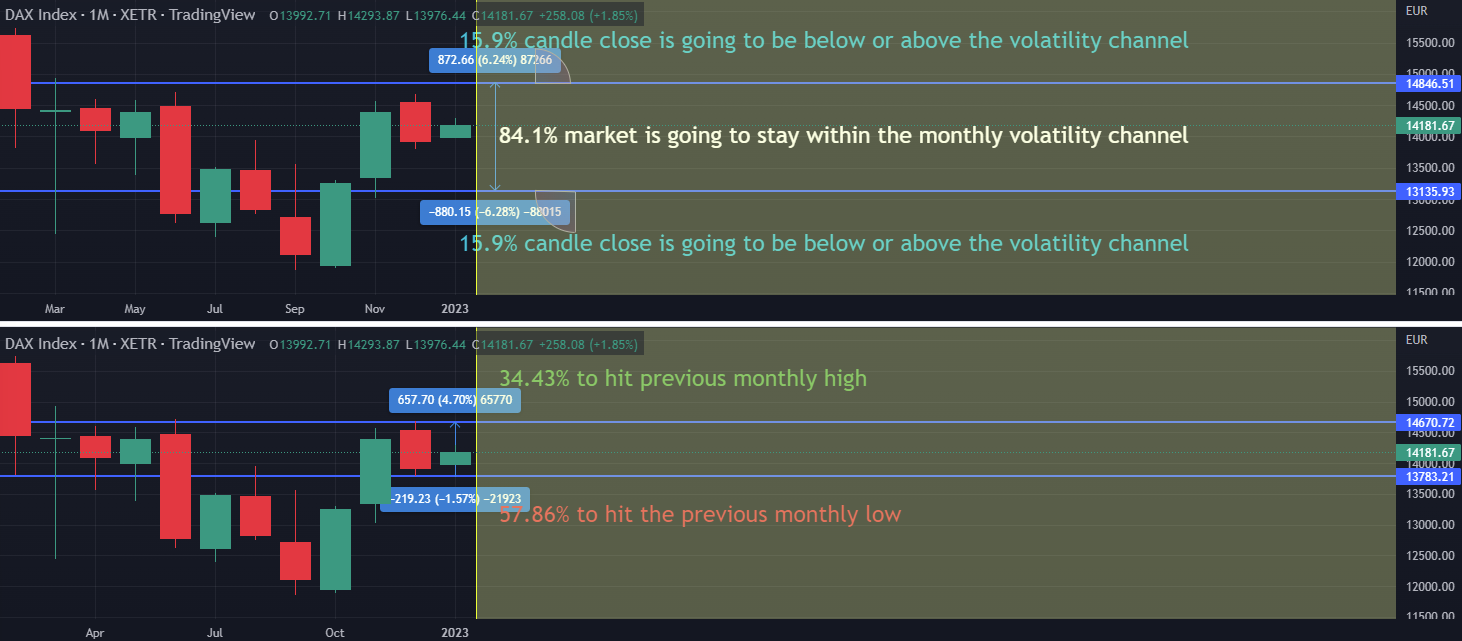 From the volatility current percentile we are located on 57th place, and based on this we can expect the monthly candle to make the next aprox movement:
