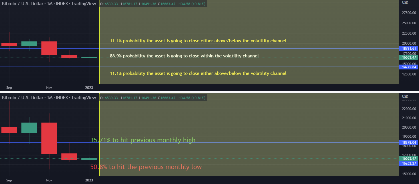 From the volatility current percentile we are located on 93th place, and based on this we can expect the monthly candle to make the next aprox movement: