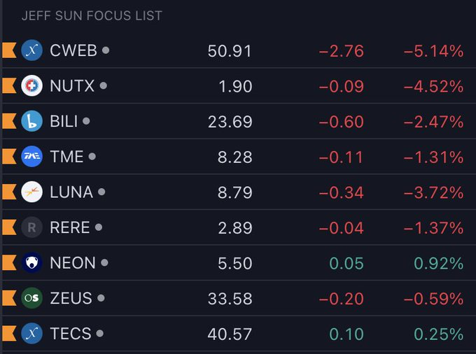 $ARCELLX, INC.(ACLX)$ $Kanzhun Limited(BZ)$ $Baozun(BZUN)$ $Dada Nexus Limited(DADA)$ $Direxion Daily S&P Oil & Gas Exp. & Prod. Bear 2X Shares(DRIP)$ $Direxion Daily Real Estate Bear 3X Shares(DRV)$ $New Oriental Education & Technology(EDU)$ $F&G ANNUITIES & LIFE INC(FG)$ $Huya Inc.(HUYA)$ $Hello Group Inc(MOMO)$ $Niu Technologies(NIU)$ $Carpenter Technology(CRS)$ $Ultragenyx Pharmaceutical(RARE)$ $Rhythm Pharmaceuticals Inc.(RYTM)$ $SUPER MICRO COMPUTER INC(SMCI)$ $TAL Education Group(TAL)$ $Direxion Daily Technology Bear 3X Shares(TECS)$ $Thoughtworks Holding Inc.(TWKS)$ https://twitter.com/jeffsuntrading/status/1609790932907610112