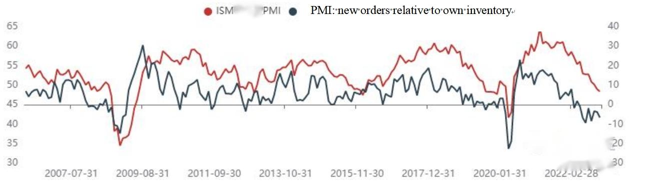 Its latest value has fallen to 48.4, the second consecutive month below the key reading of 50. At the same time, the PMI index of new orders relative to own inventory is also declining, reflecting the US manufacturing activity is still facing further downward pressure in the future.