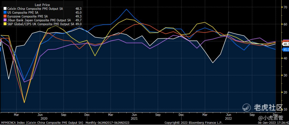The S&P Global composite PMI (quarterly) index, which reflects the comprehensive sentiment of small and medium-sized enterprises in major countries around the world, shows that the composite PMIs of the US, China, the EU, the UK and Japan are all below the key reading of 50, continuing to fuel expectations of recession.
