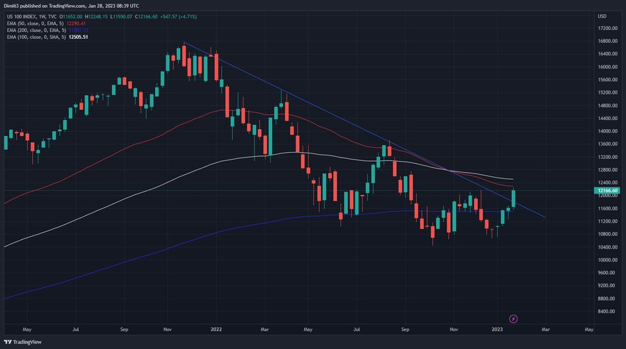 #NDQ Weekly #NASDAQ 100 has put in a great week to end 4.7% higher.