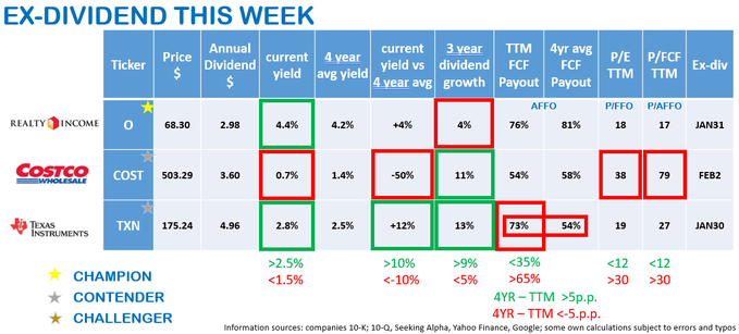 2 Contenders: $Texas Instruments(TXN)$ $Costco(COST)$ will pay dividend on JAN 30TH and FEB 2ED, separately.This was quite an eventful week in dividend increases