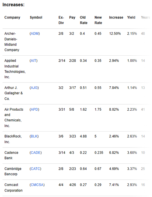 42 increases for companies in the dividend champions list