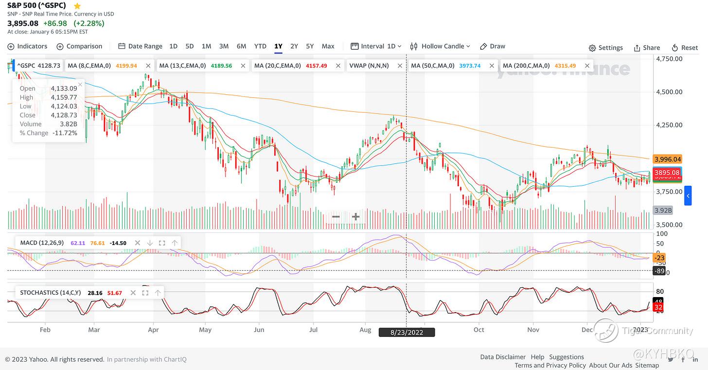 1D Chart of S&P500 as of 08Jan2023 (1 year)