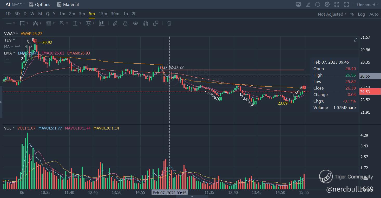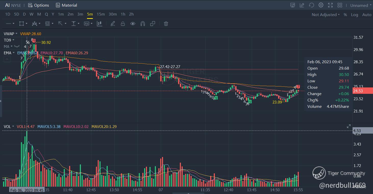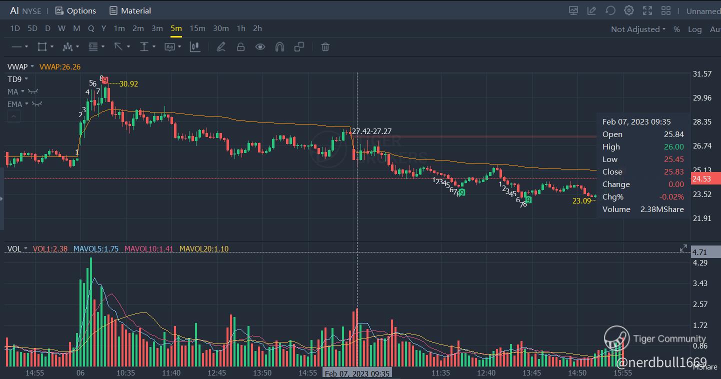 C3.ai (AI) has gained more than 5% on 06 Feb 23, as we can see that there was a huge BUY volume when trading start, and it was trading above VWAP, hence, explained why the raise in their prices.