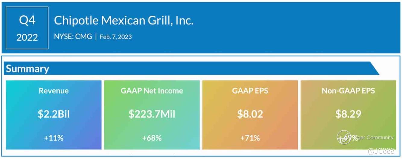 • Like the other US listed companies especially in the Tech and Financial services that are "labour" intensive as well, Chipotle has registered a +5% increased in operating expenses.