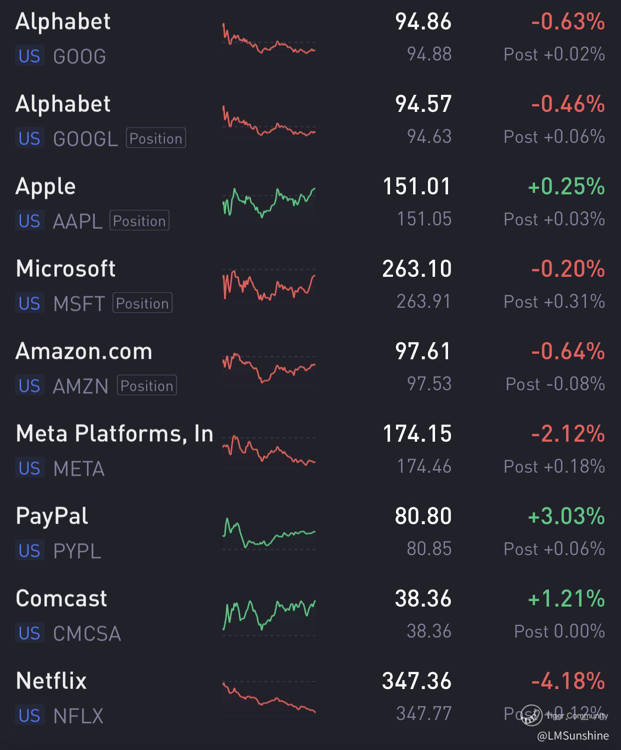 (1) Popular tech stocks were a mixed bag of gainers & losers.