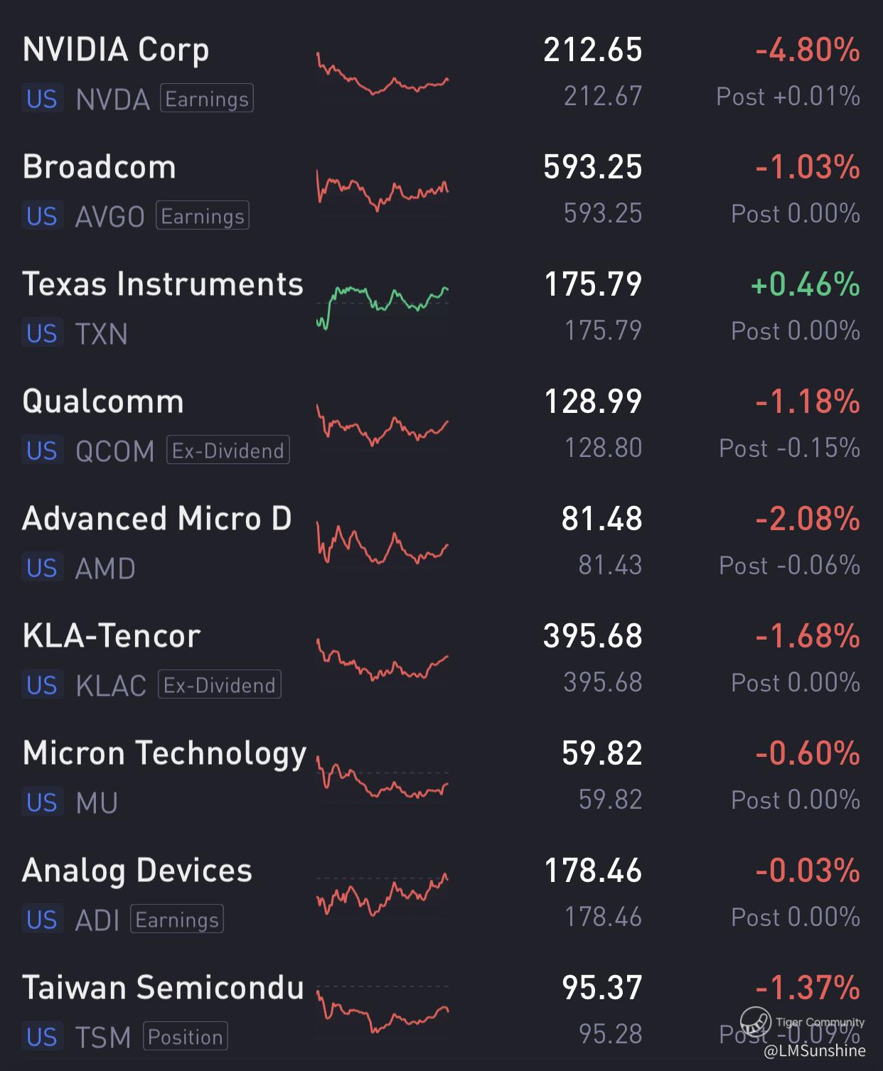 (2) Popular chip stocks all dropped except TXN that inched 0.46% higher.