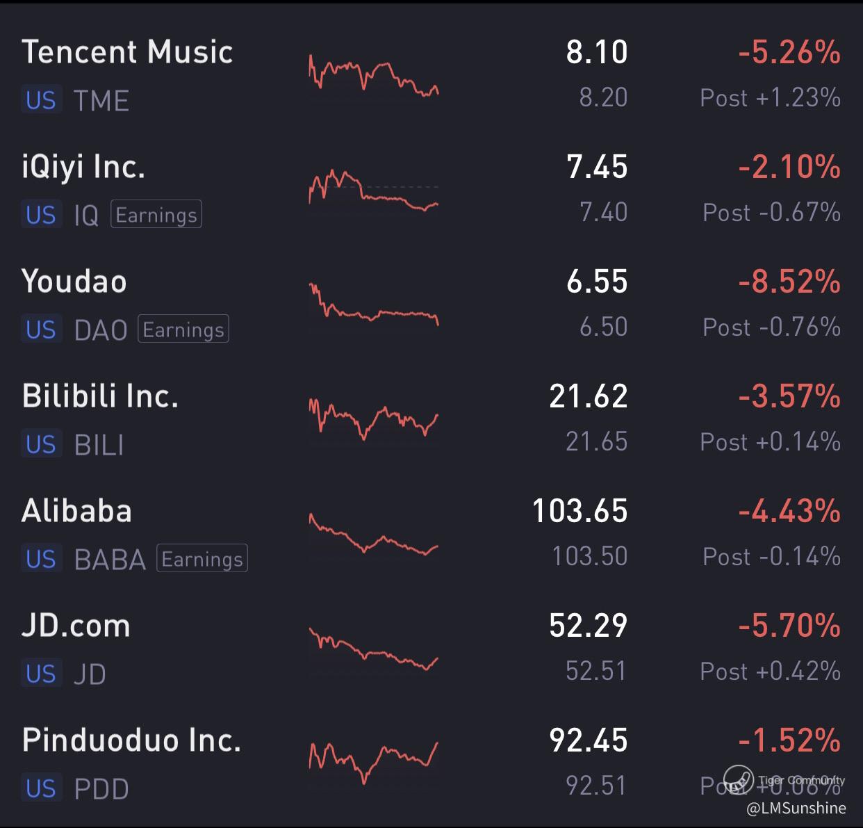 (3) Popular 🇨🇳 stocks all dropped 1.52%-8.52%🐻🐻